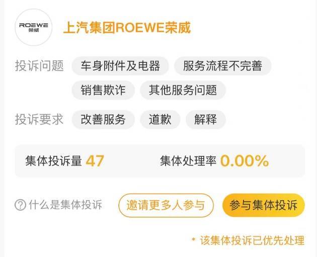 在黑猫投诉平台,车主们对上汽荣威进行了集体投诉。